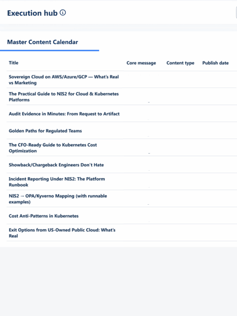 ✓ Clear pillars mapped to audiences